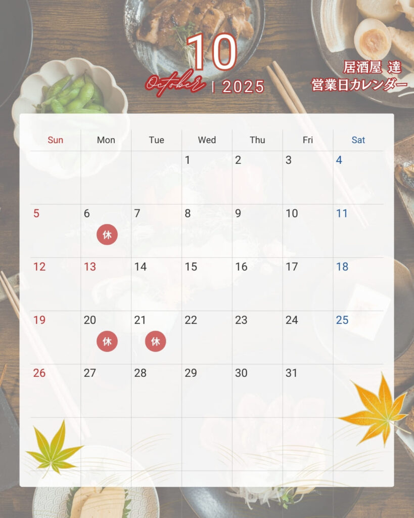 2025年10月のお休みのご案内