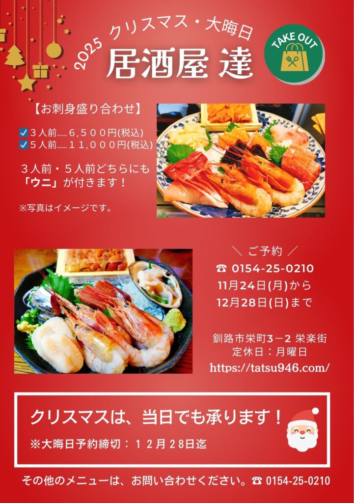 11月24日からクリスマスと大晦日のお刺身御予約受付開始します